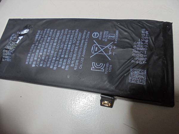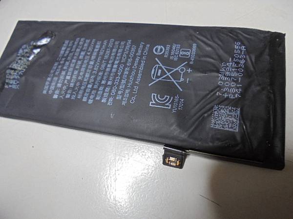 【耗電快速】Apple蘋果iPhone 8 MQ6J2TA/A~64GB智慧型手機→使用多年後原廠電池耗電快速~很快充飽100%電量→卻突然自行斷電關機~要更換可以使用的電池→拆出的原廠電池翻至背面檢視沒有外觀的損傷~新北市板橋區-高小姐【Apple iPhone 8】