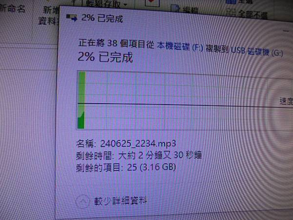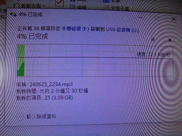 【外殼咬碎】SONY索尼ICD-PX470→4GB錄音筆錄有重要錄音檔案~使用完畢放在包包裏拉鍊未拉→被家裏小狗由包包中叼出錄音筆狂咬~已救回談話證據的錄音檔案→81%已完成~臺北市長春路-田先生【將38個項目從本機磁碟(F:)複製到USB磁碟機(G:)】