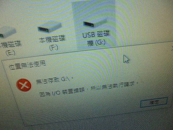 【提早送測】PQI勁永iConnect蘋果隨身碟32GB~Lightning介面儲存很多照片影片檔案→插到NB要找照片時卻無法讀取裝置~要救回iOS隨身碟裏全部照片影片檔案→位置無法使用~新北市樹林區-王先生【無法存取G:\因為I/O裝置錯誤 所以無法執行請求】
