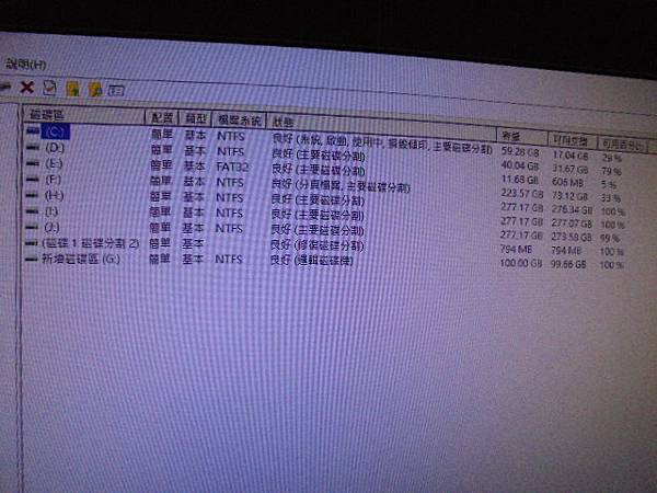 TOSHIBA東芝750GB~2.5吋硬碟為TOSHIBA東芝NB出廠搭載→改為資料碟儲存重要檔案使用卻出現未格式化視窗~由其他人判定無法救援處理→要救出結婚與蜜月照片~滑鼠點進存放磁碟管理→新北市三重區-蔡小姐【磁碟區F:磁碟區G:檔案系統均為空白】 - 2019: