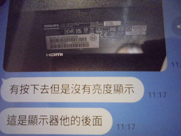 【顯示淡化】PHILIPS飛利浦243V液晶顯示器~接在店裏最主要的工作電腦→近日使用電腦工作時~覺得字體顏色太淡看不清楚會影響工作使用→要解決縣示淡化問題~幾分鐘後客人以LINE傳送螢幕型號照片→臺北市環河南路-劉小姐【先試著調整亮度】 - 2025: