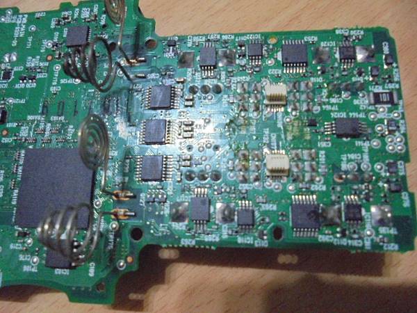 【維修處理】OLYMPUS奧林巴斯WS-852~4GB錄音筆購買公司貨做公務使用→不知使用的碳鋅電池或鹼性電池流出液體~導致錄音筆控制面板無法操作→想修好錄音筆繼續使用~主控制電路板背面→彰化縣北斗鎮-邱先生【明顯看到多處已被電池露液腐蝕】 【嚴重腐蝕】OLYMPUS奧林巴斯WS-852→4GB錄音筆購買公司貨做公務使用~某天使用的1.5V碳鋅電池或鹼性電池露液→導致錄音筆控制面板無法操作~想修好錄音筆繼續使用→發現與驗證主控制電路板背面~彰化縣北斗鎮-邱先生【有被腐蝕的印刷電路】