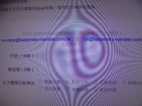【買二年版】Kaspersky卡巴斯基antivirus software防毒軟體~二年前到府安裝於店裏及家裏的三部PC使用→近日已彈出視窗通知即將到期~要繼續使用Kaspersky→登入序號頁面~臺北市環河南路-劉小姐【www.kaspersky-mrmber.com.tw顯示發送成功】