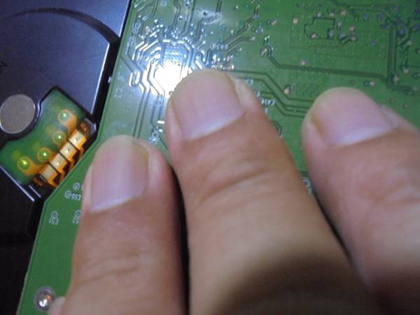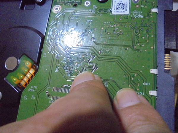 【針腳完整】WD威騰3TB~3.5吋黑標硬碟要移動至其他部電腦使用→自行更換安裝時不慎弄壞硬碟接口→折壞SATA接座7Pin訊號端塑膠片~要修復WD硬碟的SATA接座~左手3根指頭觸摸WD威騰3TB黑標3.5吋硬碟電路板→臺東縣臺東市-翁先生【正常轉動】