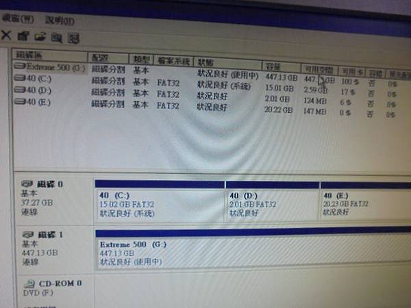 【再送救援】Seagate希捷500GB→acer筆記型電腦出廠搭載2.5吋裸碟~忽然開機無法進入系統→自行拆出裸碟當外接碟讀不到兩個分割磁區~要救出D槽的重要檔案資料→滑鼠點進存放磁碟管理~新北市土城區-連先生【磁碟區(F:)(G:)(H:)4個切割區】