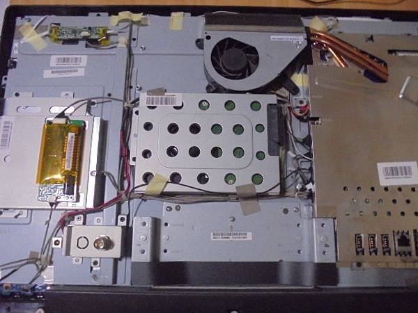 ASUS華碩ET2410INTS→All-in-One PC原廠搭載硬碟~感覺讀取運轉過慢→要改為SSD固態硬碟提升效能~前殼與後殼準備做拆離→新北市三重區-楊先生【已順利分開前後殼】 ASUS華碩ET2410INTS→All-in-One PC原廠搭載硬碟~感覺讀取運轉過慢→要改為SSD固態硬碟提升效能~硬碟同硬碟固定架周邊→新北市三重區-楊先生【佈有相當多的接線】