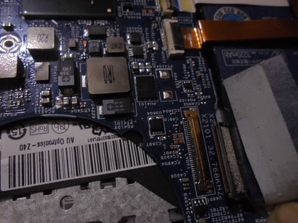 Acer宏碁S3-391 MS2346→超極致筆電使用中忽然變為白屏無法正常顯示~外接投影機可正確顯示→要修好螢幕異常~佈在主機板下方空隙的螢幕排線→新北市板橋區-林先生【已順利拉出】